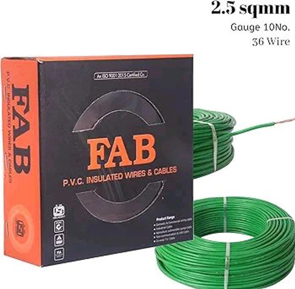 COPPER 2.5 MM 90 MTR FR PVC Insulated CCA Copper Wire, Single Core Multi Strand House Cable for Gauge (10 No.) (Green)