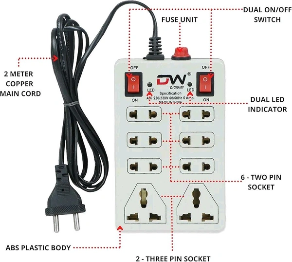 - Enhanced Safety: Includes a built-in safety fuse and an indicator light to protect your devices from overloading and short circuits.