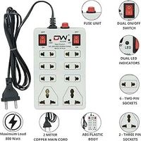 Digiway 240 Volts 8 + 2 Mini Power Strip Extension Cord/Board with 2 Switch, Indicator, Safety Fuse & 8 International sockets, 2 Meter Cord Wire (Beige) 100+ bought in past month