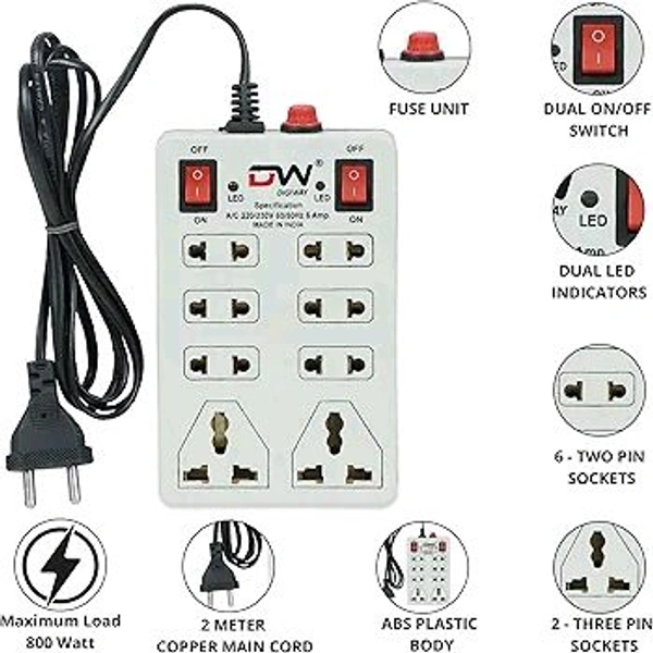 - Universal Compatibility: Equipped with 8 international sockets, it supports a wide range of devices and plug types.