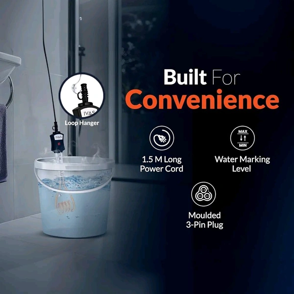 IVAS 1500 W Immersion Rod, Water-proof, Low Cost Water Heating, Indicator Light, High Grade Nickel Coated Copper Element, Bucket Clip, Double ISI Certified, 2-year warranty