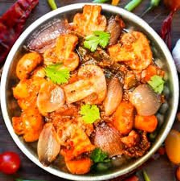 Experience the perfect blend of rich flavors and wholesome ingredients with our Mashroom Do Pyaza Sabji, brought to you by Apani Duckan. This delicious dish is a masterful combination of succulent mushrooms and caramelized onions, cooked to perfection with a medley of traditional Indian spices. Whether you're looking for a hearty meal or a side dish that adds a burst of flavor to your table, this savory delight is sure to leave you craving more!