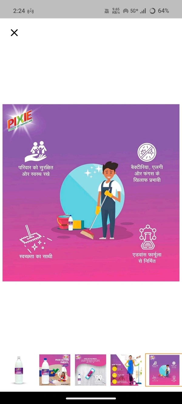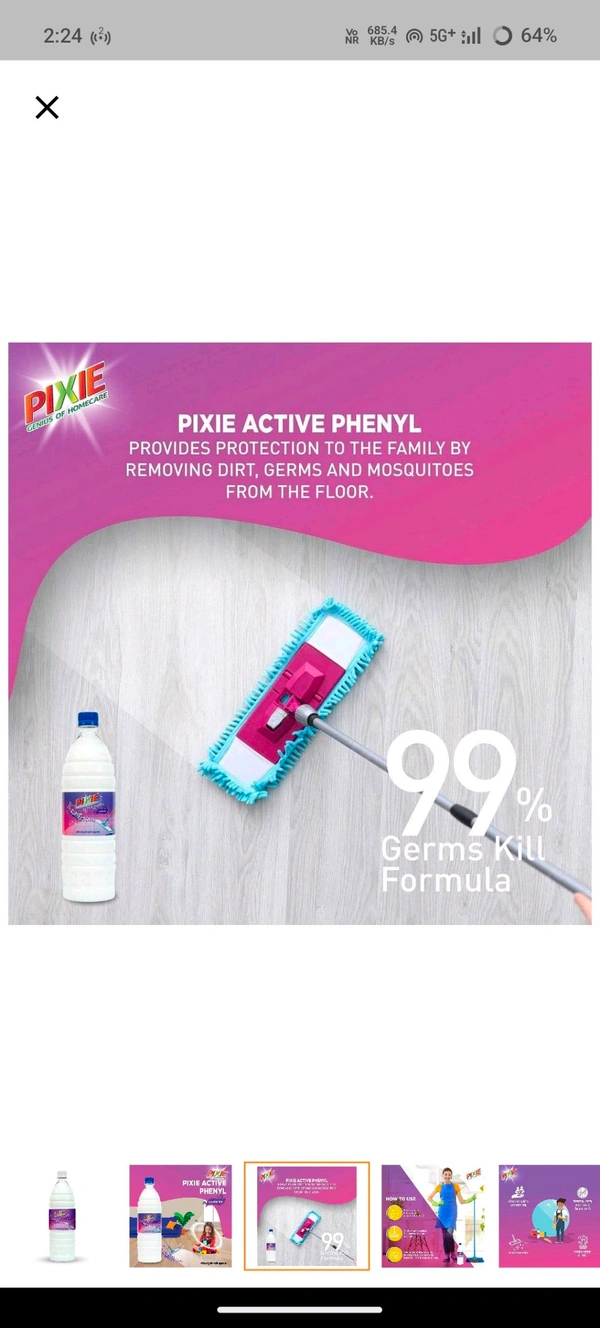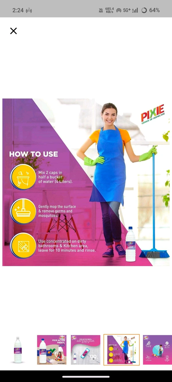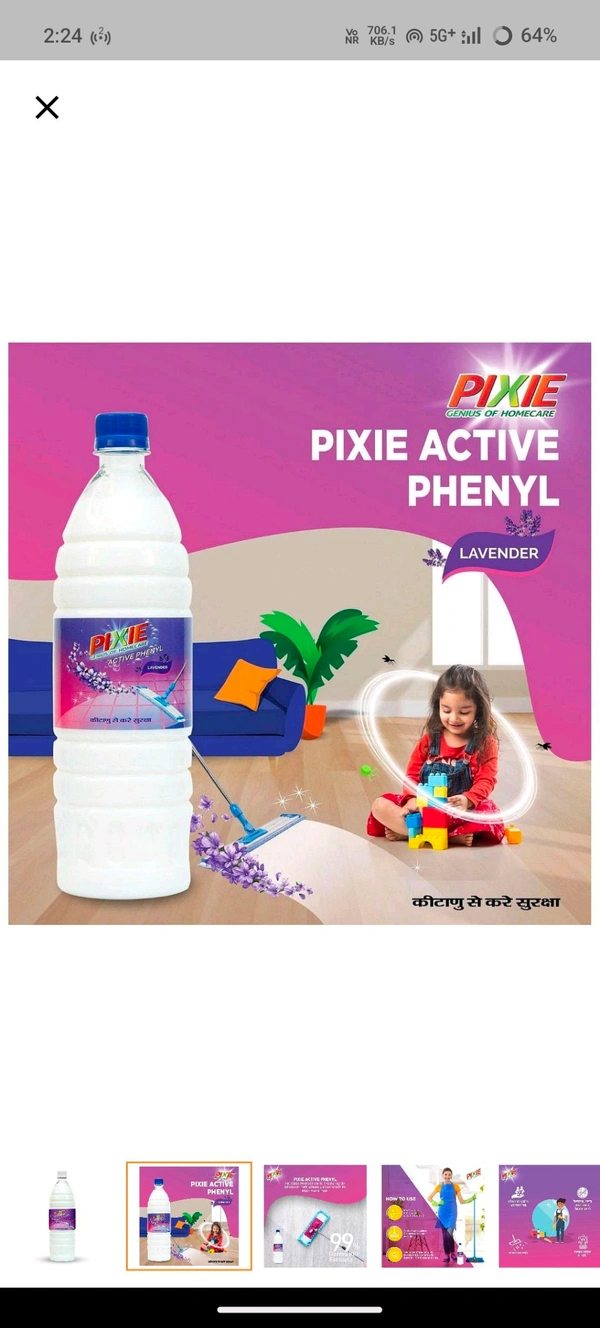 Transform your cleaning routine with the Pixi Active Phenyl Lavender, the ultimate solution for a sparkling clean and fragrant home. Infused with the soothing aroma of lavender, this powerful phenyl is designed to keep your space clean, germ-free, and smelling delightful. Whether it's your home, office, or any other living space, Pixi Active Phenyl Lavender ensures a spotless finish every single time!