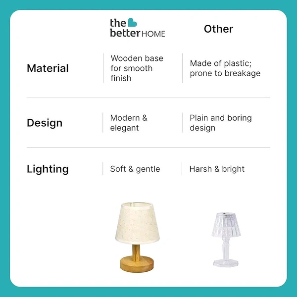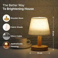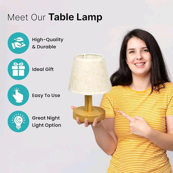 The Better Home Dimmable Table Lamp for Bedroom-21cm| Attached SMD Led Bulb | Wooden Base & Fabric Shade | Aesthetic Table Lamp for Living Room | Gift for Housewarming Ceremony| Home Decor Items